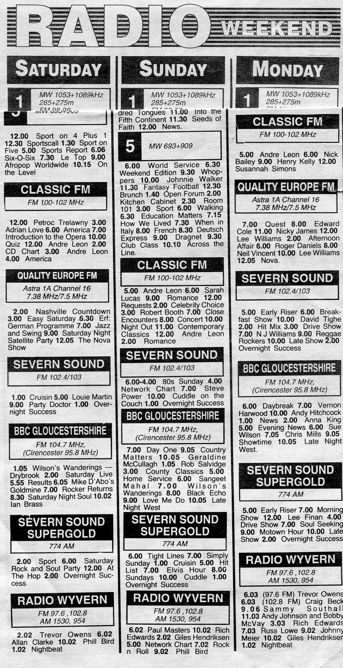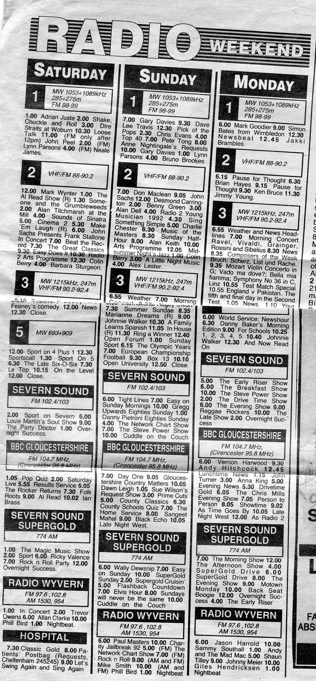When I returned to the UK in Spring 1991 I sent some demo tapes off. One was to a Stephanie Denham at nearby Radio Wyvern. Living temporarily with my parents in Cheltenham, my mum answered the (landline) phone one late afternoon. “It’s Sammy Southall from Radio Wyvern” – she called into the kitchen. My heart raced and no doubt my voice went up an octave! “Hi it’s Phill Bird” – “Hey guy…. come up and have a chat in Worcester someday”. Wow, was this really happening . . . . Sam and I subsequently had a few meets, I did a bit of studio stuff and I was booked to do a late show one Monday end of June (and, if all was well, possibly the next day too). Yawning on the Tuesday, in my temping job in Cheltenham, I finished early to drive back up to Worcester to go through the log tape with Sam. Listening, link by link, I found myself cringing and thought ’that was it’ – though Sam thankfully saw some potential; and, as he pointed out, I was more relaxed once left alone in the studio, come 10.30pm.